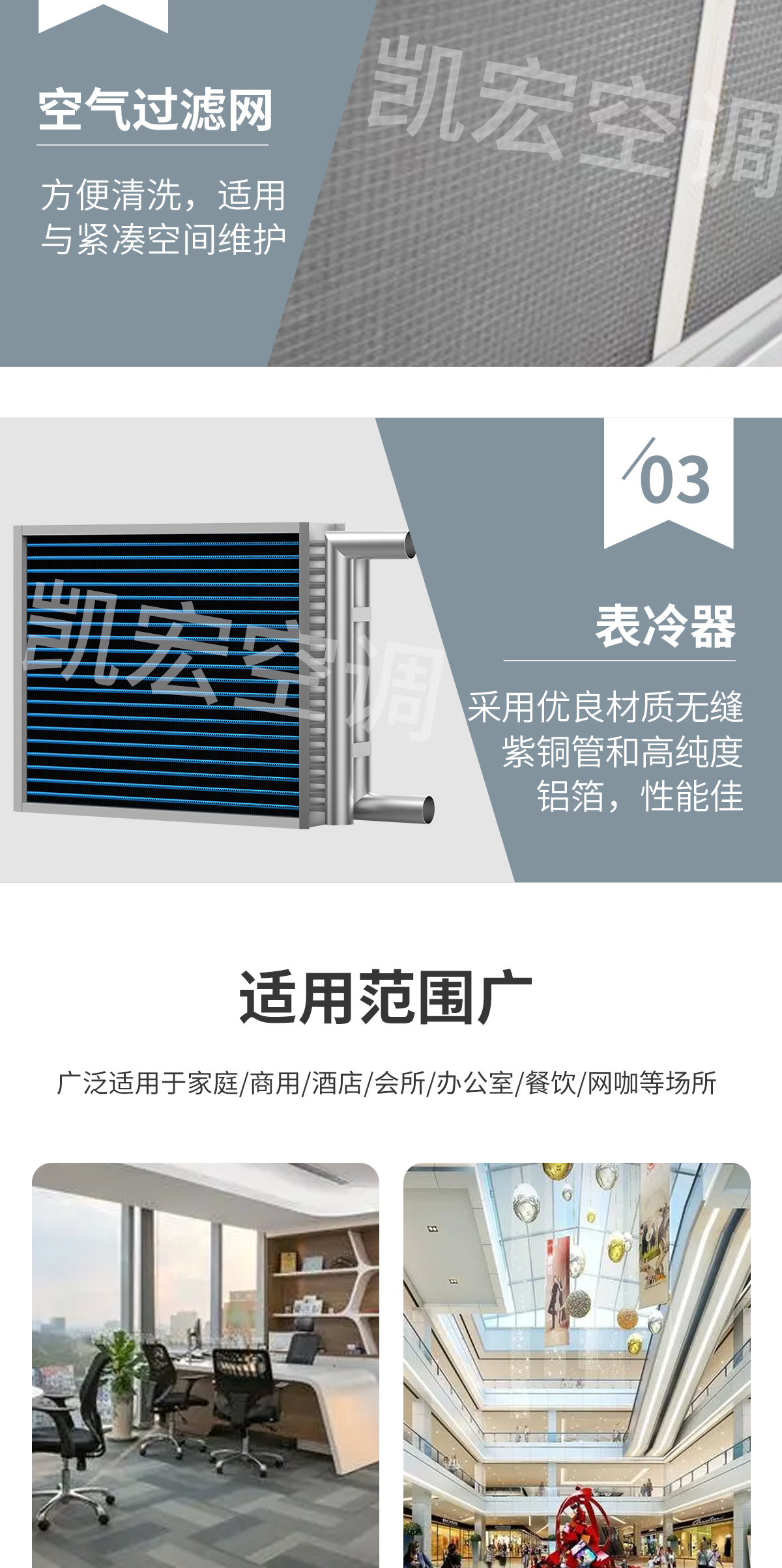 遠程射流空調機組主要由遠距離球形風口、高效換熱器、低噪音風機、過濾器、國際知名品牌壓縮機等構成。兼具可調形風口與球形噴口的特點。在實現遠距離送風的同時,又可滿足對氣流組織的調整 遠程噴射空調機組通過可變調流態球形噴口,實現冷熱送風的不同流形,使制冷和供暖在同一設備中完美兼顧。凱宏針對傳統空調熱風難送及溫度分層不均的難題,結合傳統球形噴口和旋流風口的特點,研制出新一代的空調機組,在實現距離送風的同時,又可調整氣流的流態 適用于生態酒店、養殖場所、種植場所、大型體育館、候車大廳、市場、展館、機場、超市、大型工業廠房等